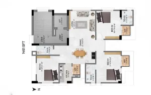This 1451 sft 3-bedroom, 3-bathroom apartment in Bashundhara offers a well-planned layout with bedroom and dining cabinets, a separate TV space, a bright dining area, and three balconies. Amenities include gas, residential electricity, 24/7 security, and a lift. Centrally located near Baridhara, the apartment provides easy access to leading educational institutions. For details, call 16604 or WhatsApp 01755662414 today.